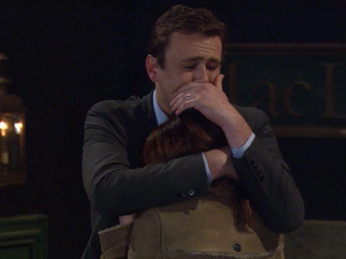 Персонаж Джейсона Сигела не знал, какую именно новость сообщит его экранная супруга в сцене, где Лили рассказывает Маршаллу о смерти его отца.