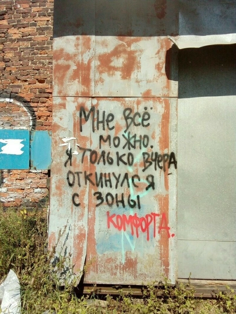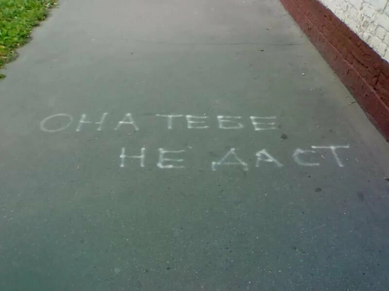 А на асфальте и заборах оказывается пишут не только матерные слова, а иногда и вполне себе мудрые советы, философские мысли, нежные признания и внезапные откровения. Собрали для вас самые смешные и умные надписи со стен и асфальтов, которые бескомпромиссны, как жизнь в России. Посмотрите, может найдёте знак лично для себя!