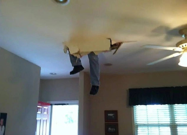 Мужчина внезапно оказался у соседей снизу, провалившись сквозь потолок