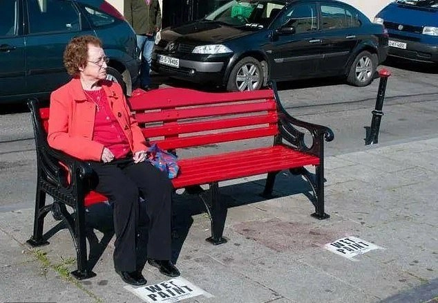 Пожилая женщина не обратила внимания на предупреждение «осторожно, покрашено»
