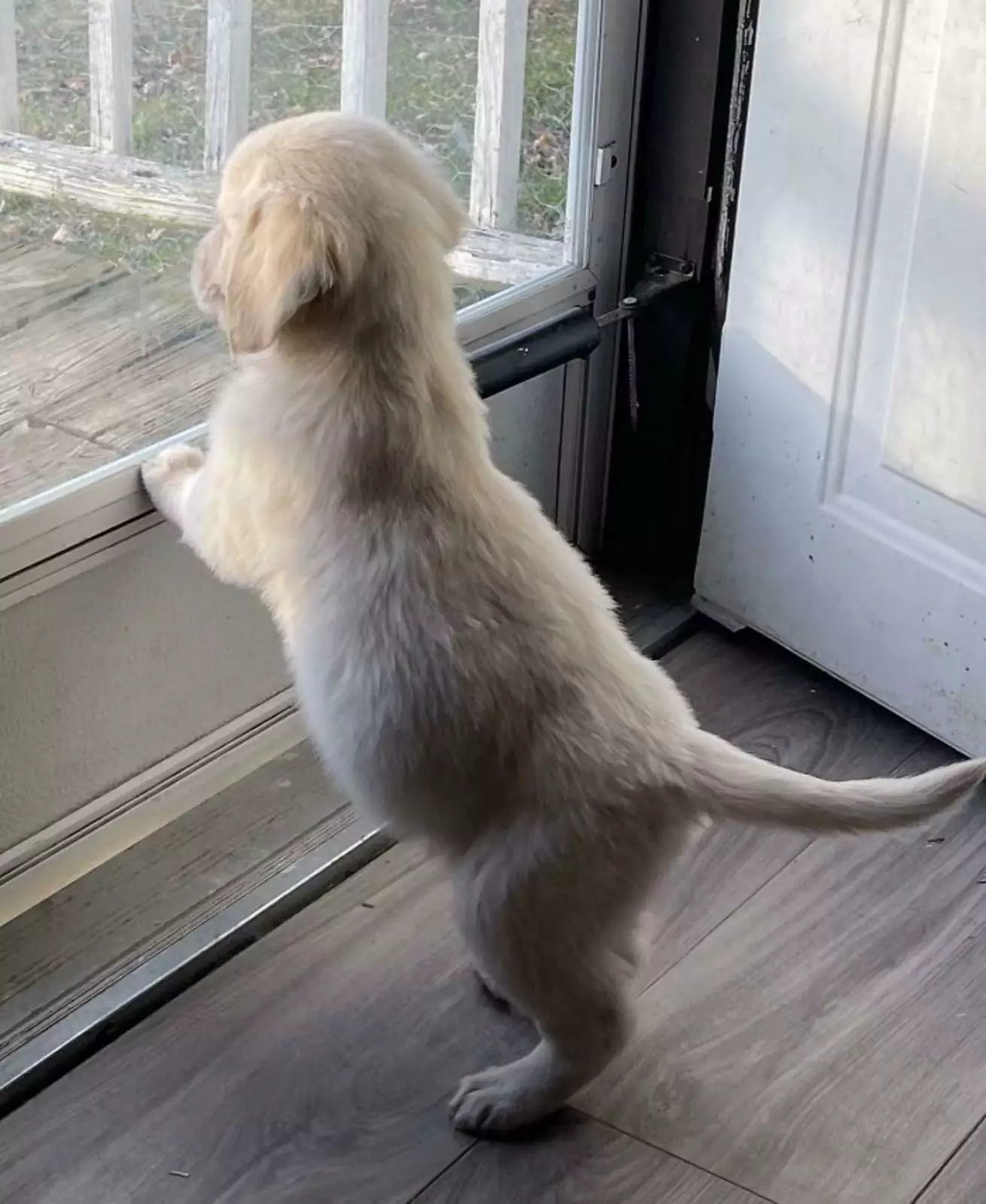 «Наш новый пес Чарли только что вернулся со своей первой прогулки по лесу».