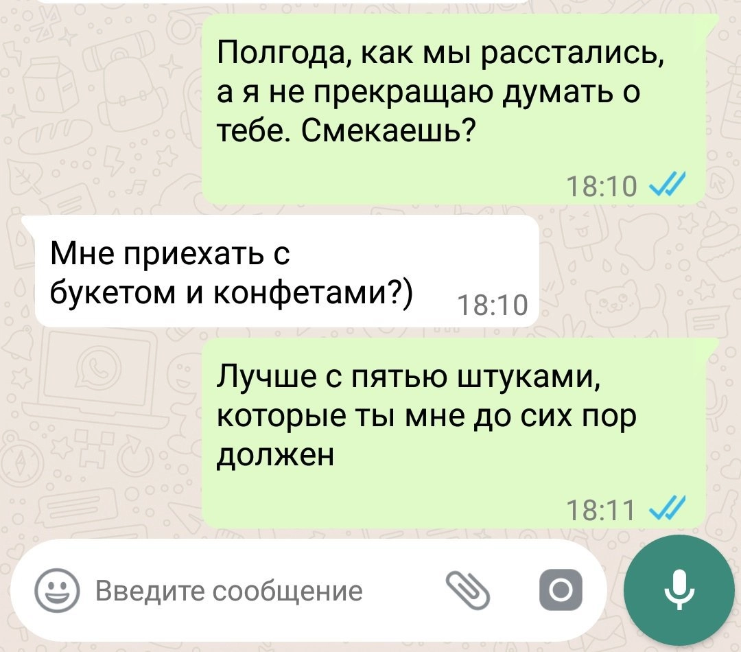 Собрали для вас забавные переписки после расставаия, которые даже не следовало начинать. Уверены, в некоторых вы узнаёте себя.