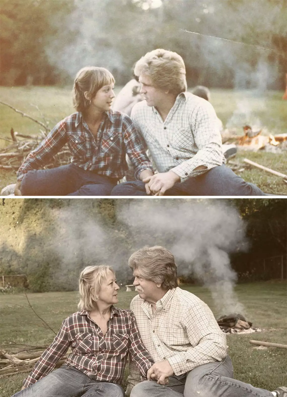 Пара через 48 часов после знакомства и спустя 50 лет.