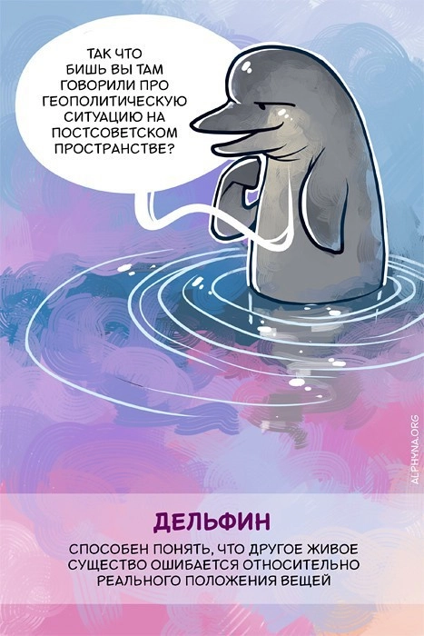 «Мы все рано или поздно умрём — и после смерти, скорее всего, будем реинкарнированы в животных, потому что мы психи, хамы и нирваны не заслужили. Но в кого имеет смысл метить? Кто из животных круче всех? Наша редакция попыталась разобраться. А поскольку под крутостью у нас тут понимают ум, пост это будет посвящён самым умным животным. Что вообще такое „ум“? Можно ли считать умным человека, не читавшего Достоевского? А неспособного перемножить в уме двузначные числа? Не желающего изобретать новое? К животным применимы все те же вопросы», — написала в своём блоге питерская художница с необычным чувством юмора и особым взглядом на жизнь и творчество.