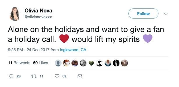 На Рождество актриса в своем микроблоге в Twitter обратилась к поклонникам с вопросом, может ли она позвонить кому-нибудь, чтобы помочь ей «поднять настроение».