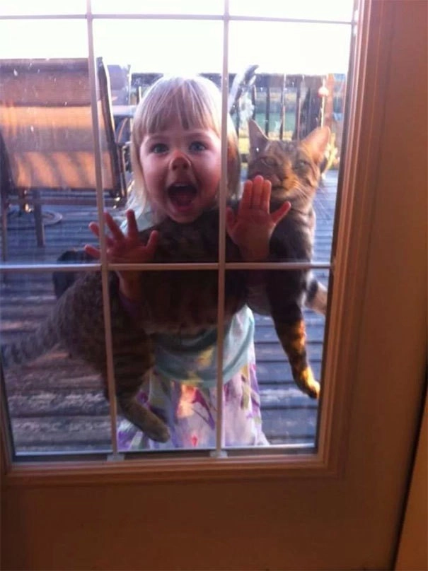 Домашние питомцы, живущие в одном доме с маленькими детьми, становятся очень терпеливыми. Дети используют кошек и собак, как полотна для своих художеств, наряжают в забавные костюмы, как кукол и вообще принимают их за живые игрушки. Главное в таких играх, чтобы все были довольны!