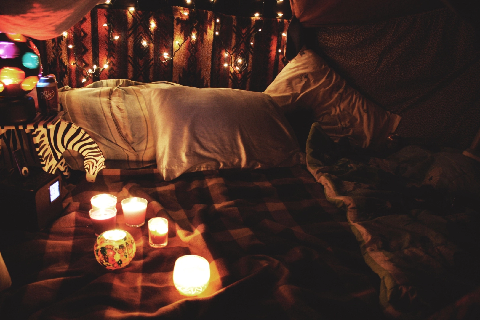 В детстве многие делали себе укрытие посреди комнаты, построенное из стульев и одеял. Почему бы не поностальгировать и не сотворить нечто подобное еще раз? Соберите все одеяла и подушки в доме, поставьте стулья, повесьте гирлянды, сделайте крепость и устройте праздничный обед прямо внутри нее. Для большой семьи, конечно, придется собрать настоящий одеяльный замок, но оно того стоит. Более простой вариант — поставить и украсить палатку.