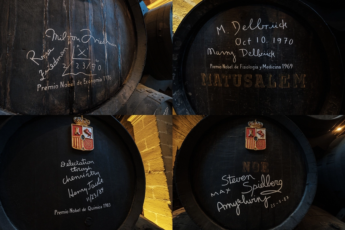 Испанцы восемнадцать евро отрабатывают на все сто. Вначале вас усадят в тележку и прокатят по огроменной территории хересодельни показав каждый уголок. Затем вас организованной толпой загонят в подвалы, где подробно в деталях распишут процесс производства. Покажут что заливают, куда заливают, как заливают, продемонстрируют бочку в разрезе с дрожжевым слоем, с помощью которой происходит хересная магия. Зрелище не сильно аппетитное.