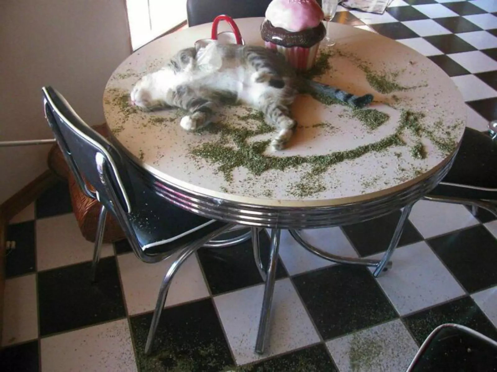 Кот сдувается.