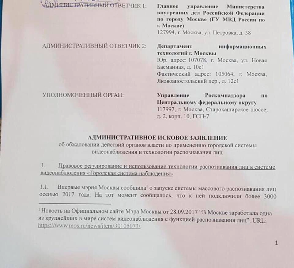 Общественный деятель из Москвы Алена Попова обратилась в Савеловский суд с заявлением, в котором призывает проверить законность установки в столице системы распознавания лиц по изображению с видеокамер. Попова ссылается на положения федерального закона о защите персональных данных, запрещающие сбор биометрических данных граждан без их письменного согласия.