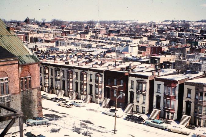 У входа в зал для торжеств. Бруклин, 1956 год. Это место сегодня.