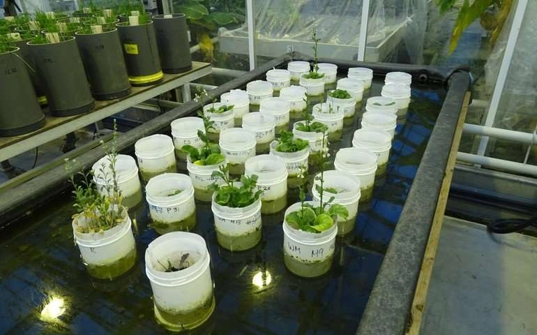 Горшки с рукколой, выращенной в марсианской почве