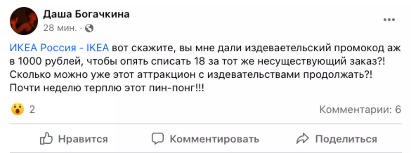 «Туда-сюда деньги кидают. Банк зачисляет обратно, а IKEA снова снимает, хотя в личных сообщениях представители компании извинялись», — негодует Богачкина.