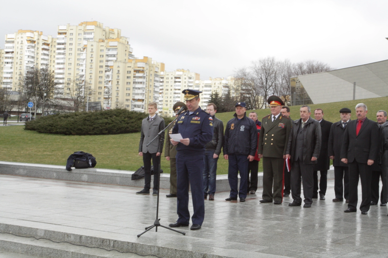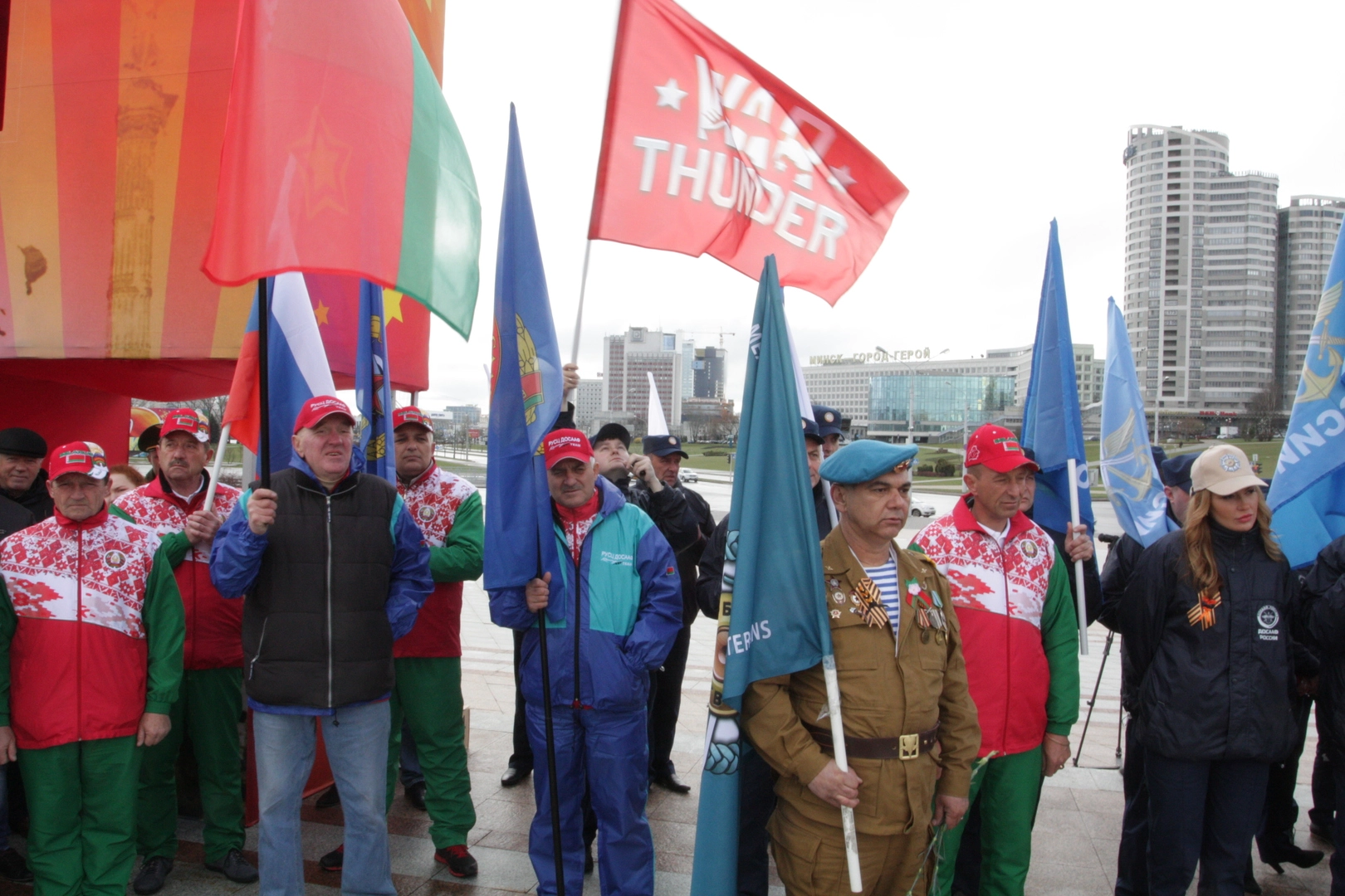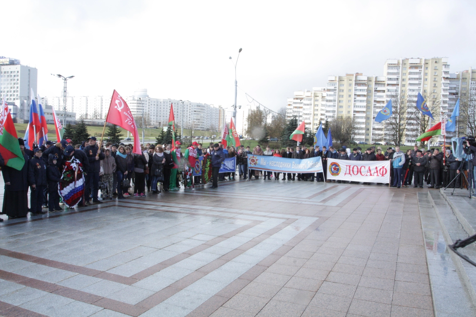 У стелы «Минск-город-Герой» состоялся торжественный митинг. В нем приняли участие председатель ДОСААФ России генерал-полковникАлександр Колмаков, председатель центрального совета ДОСААФ Республики Беларусь генерал-майорИван Дырман, председатель Постоянной комиссии по национальной безопасности Палаты представителей Национального собрания Республики Беларусь генерал-майор запаса Валерий Гайдукевич, ветеран Великой Отечественной войны, ветеран ДОСААФ Беларуси, майор в отставке Лев Шейнкман, другие должностные лица.