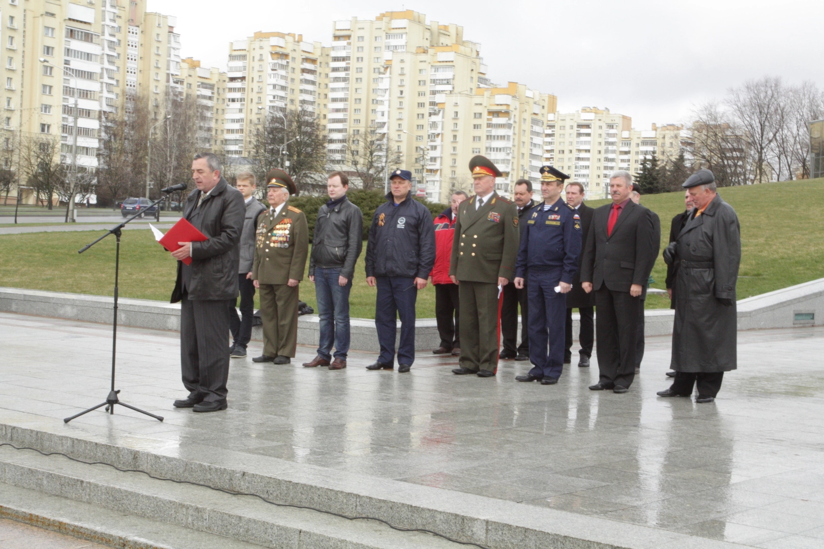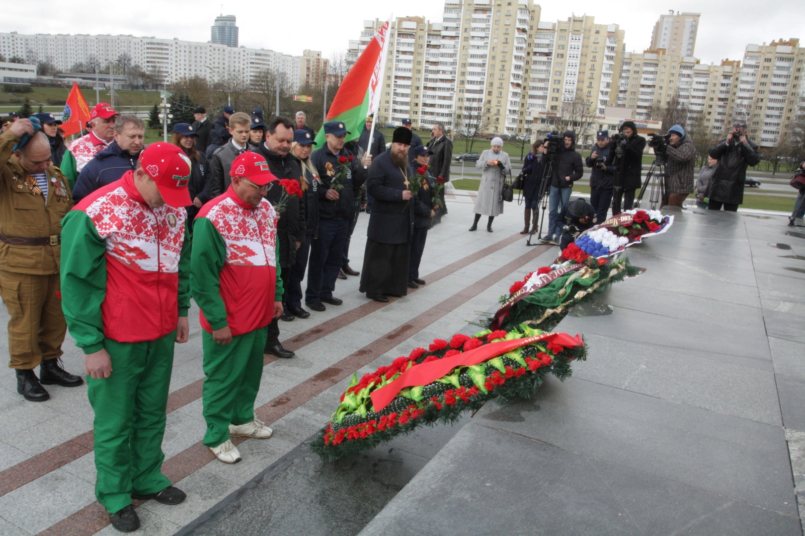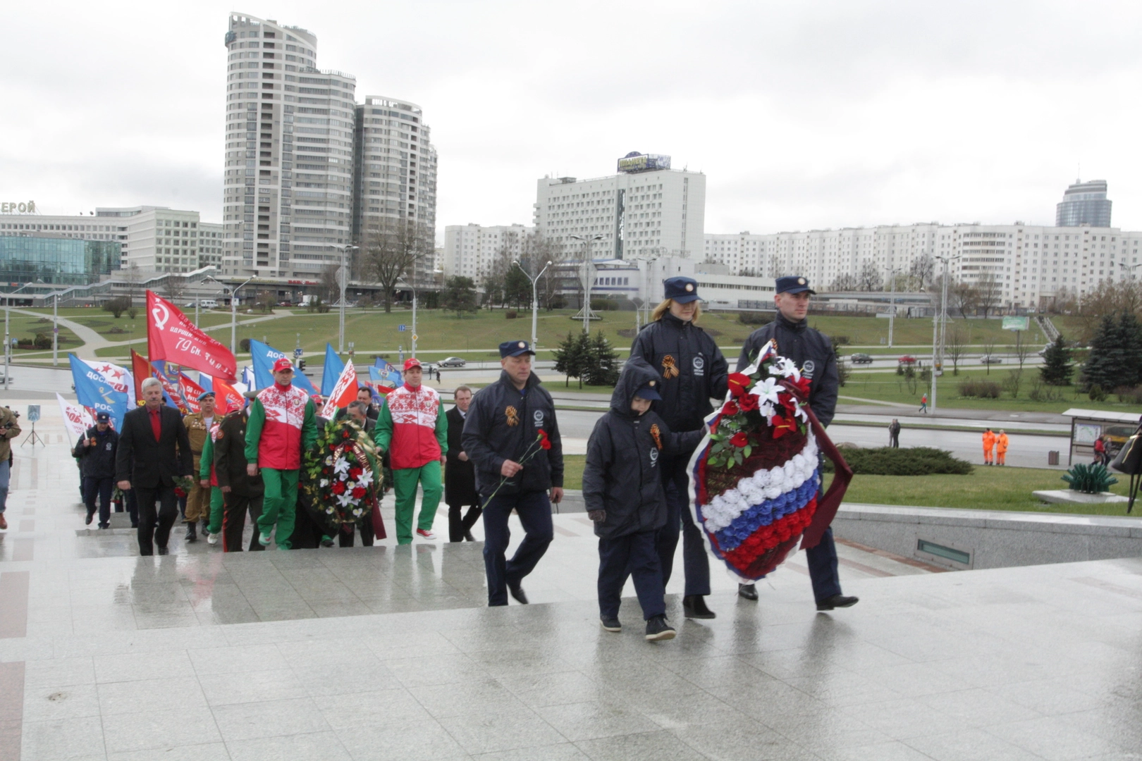 У стелы «Минск-город-Герой» состоялся торжественный митинг. В нем приняли участие председатель ДОСААФ России генерал-полковникАлександр Колмаков, председатель центрального совета ДОСААФ Республики Беларусь генерал-майорИван Дырман, председатель Постоянной комиссии по национальной безопасности Палаты представителей Национального собрания Республики Беларусь генерал-майор запаса Валерий Гайдукевич, ветеран Великой Отечественной войны, ветеран ДОСААФ Беларуси, майор в отставке Лев Шейнкман, другие должностные лица.