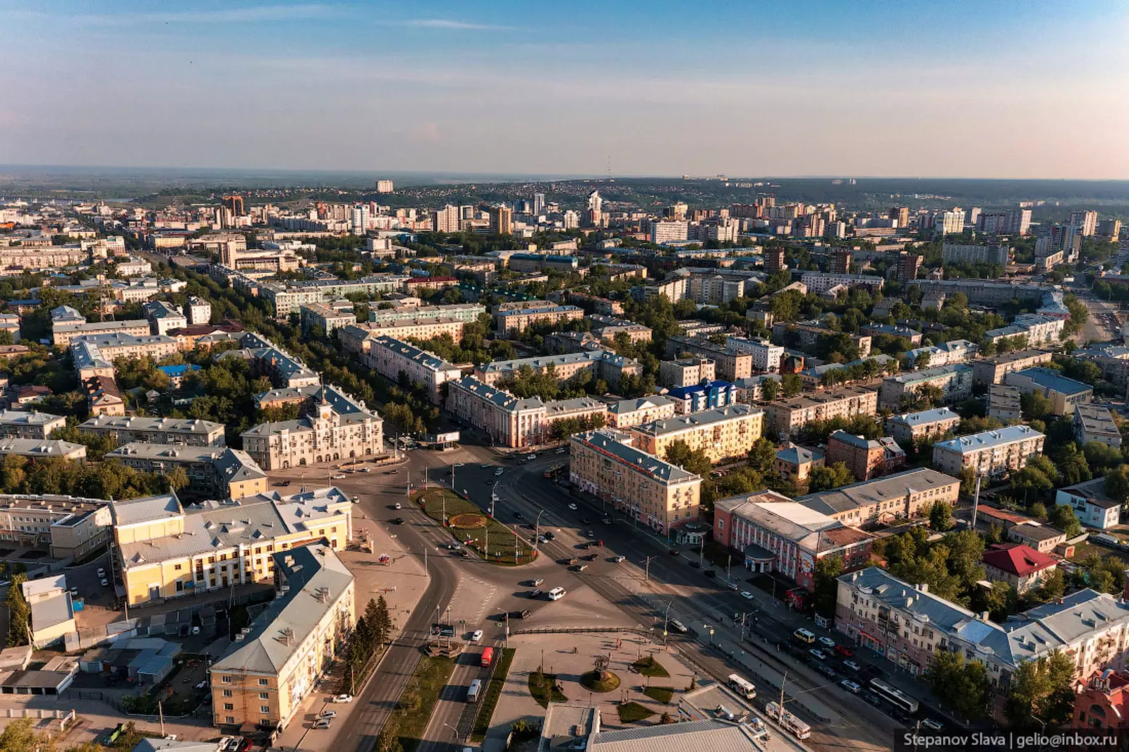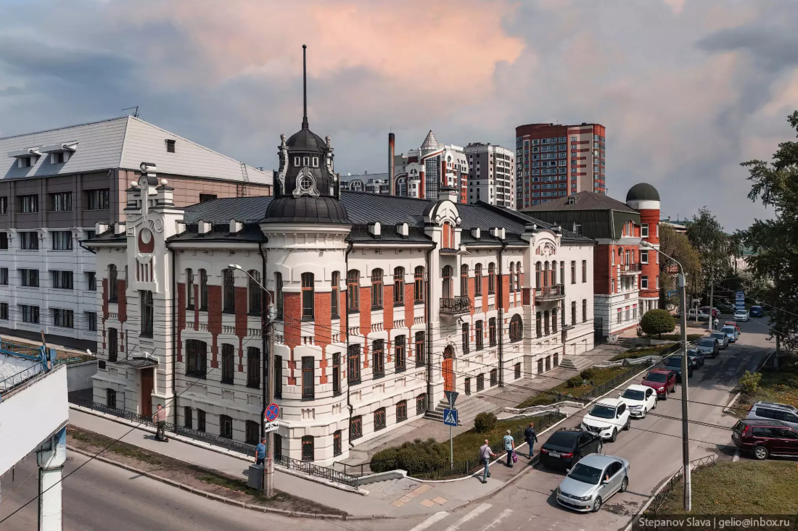 26. Современный центр Барнаула не совсем совпадает с историческим. Это связано с тем, что город не разрастался вокруг сереброплавильного завода, а вытягивался в сторону, занимая только один берег Оби.