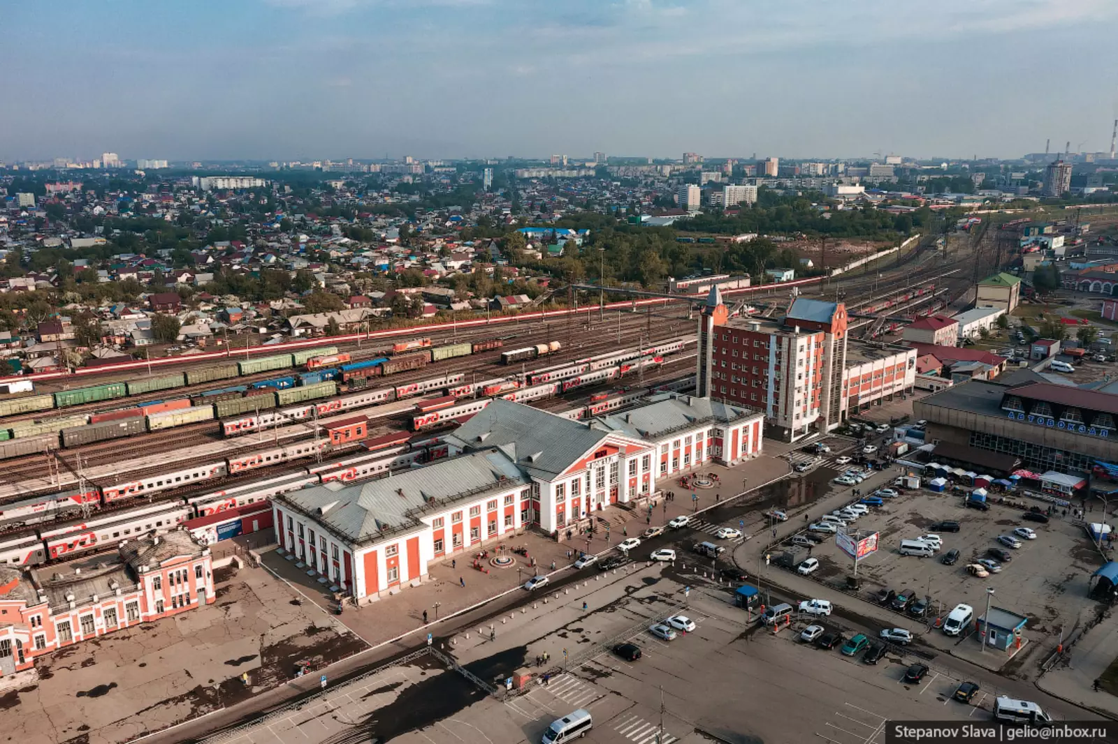 48. Железнодорожный вокзал Барнаула. Слева от него — здание старого вокзала, построенного в 1914 году и прослужившего до начала 50-х.