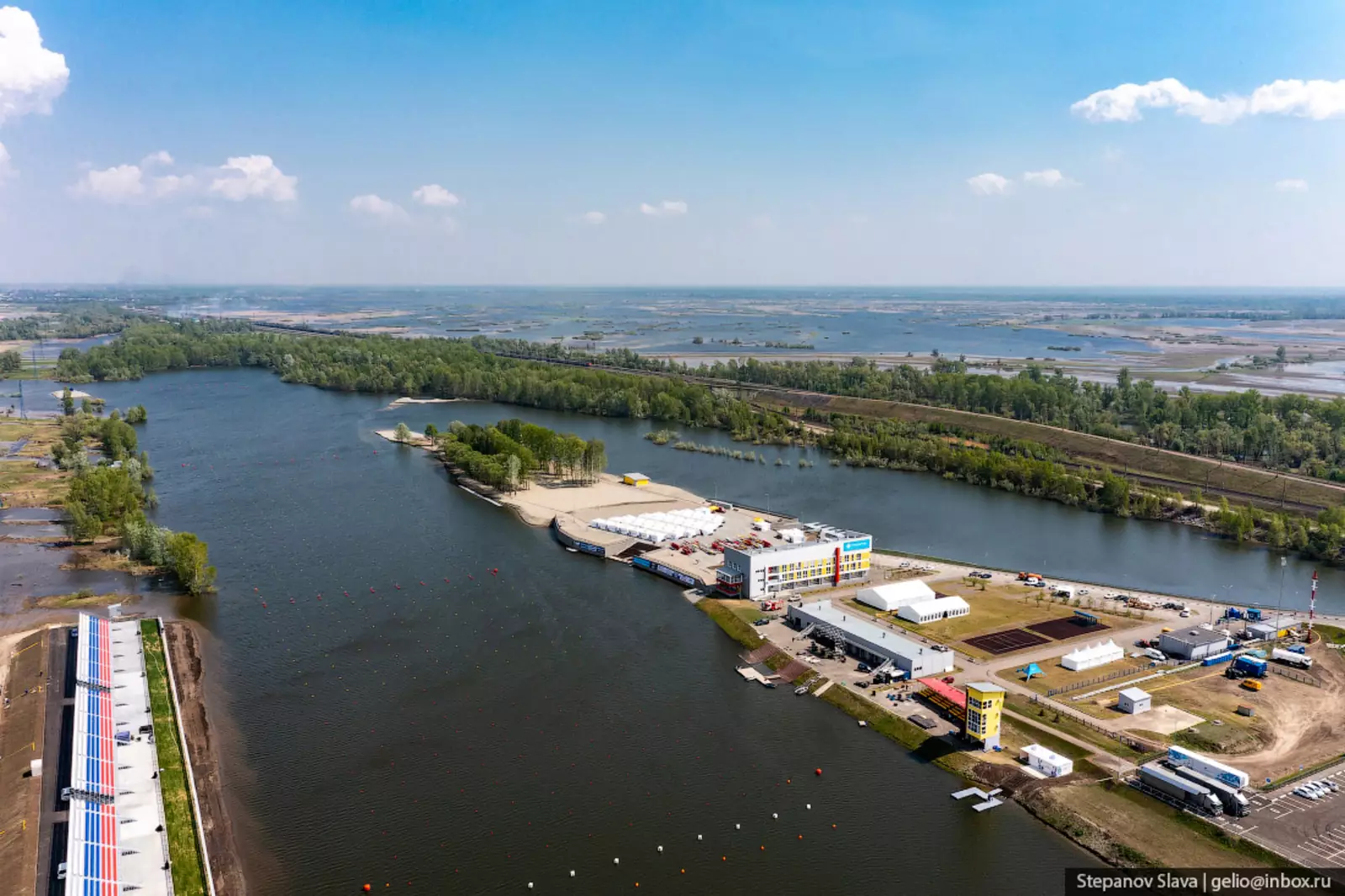 54. Спортивная база по гребле на байдарках и каноэ. С 2017 года на гребном канале Барнаула стали систематически проводится масштабные спортивные соревнования, как российские, так и международные, самым значимым из которых стал второй этап Кубка мира по гребле на байдарках и каноэ в мае 2021 года.