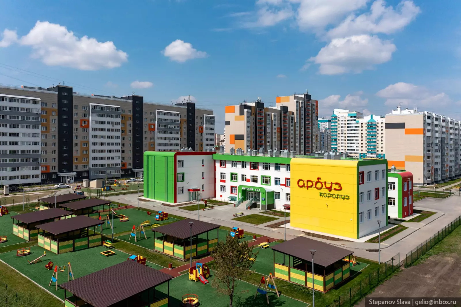 57. ЖК «Аквамарин» — один из самых известных жилых комплексов Барнаула. Три 24-этажных дома располагаются на набережной реки Оби. Два последних этажа в высотках занимают двухуровневые апартаменты, оборудованные частными смотровыми площадками.