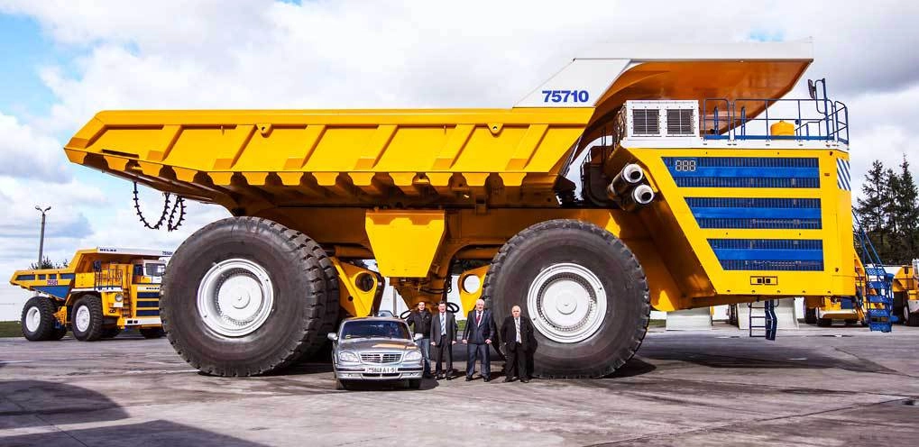 Не так давно на место своей постоянной работы в одном из открытых карьеров в Сибири, Россия, прибыл новый огромный карьерный самосвал, который может транспортировать груз, весом до 450 тонн, что эквивалентно весу 350 легковых автомобилей среднего класса. Этот самосвал, БелАЗ 75710, становится обладателем звания самого большого самосвала в мире, отобрав это место у своего предшественника, самосвала БелАЗ 75600, грузоподъемность которого составляет 320 тонн.