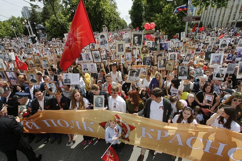 Участниками «Бессмертного полка» в Краснодаре стали 75 тысяч человек, а в целом по региону к международной акции присоединились 356 тысяч граждан России.