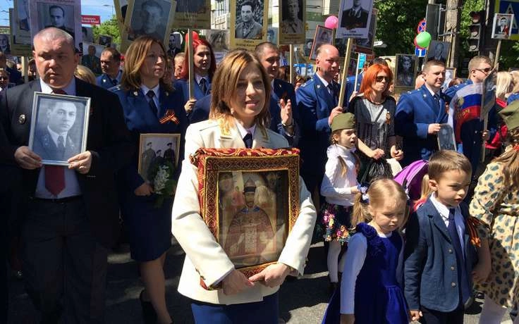 В Симферополе во время шествия «Бессмертного полка» отличилась прокурор Крыма Наталья Поклонская. Она вышла с иконой Святого страстотерпца царя Николая II.