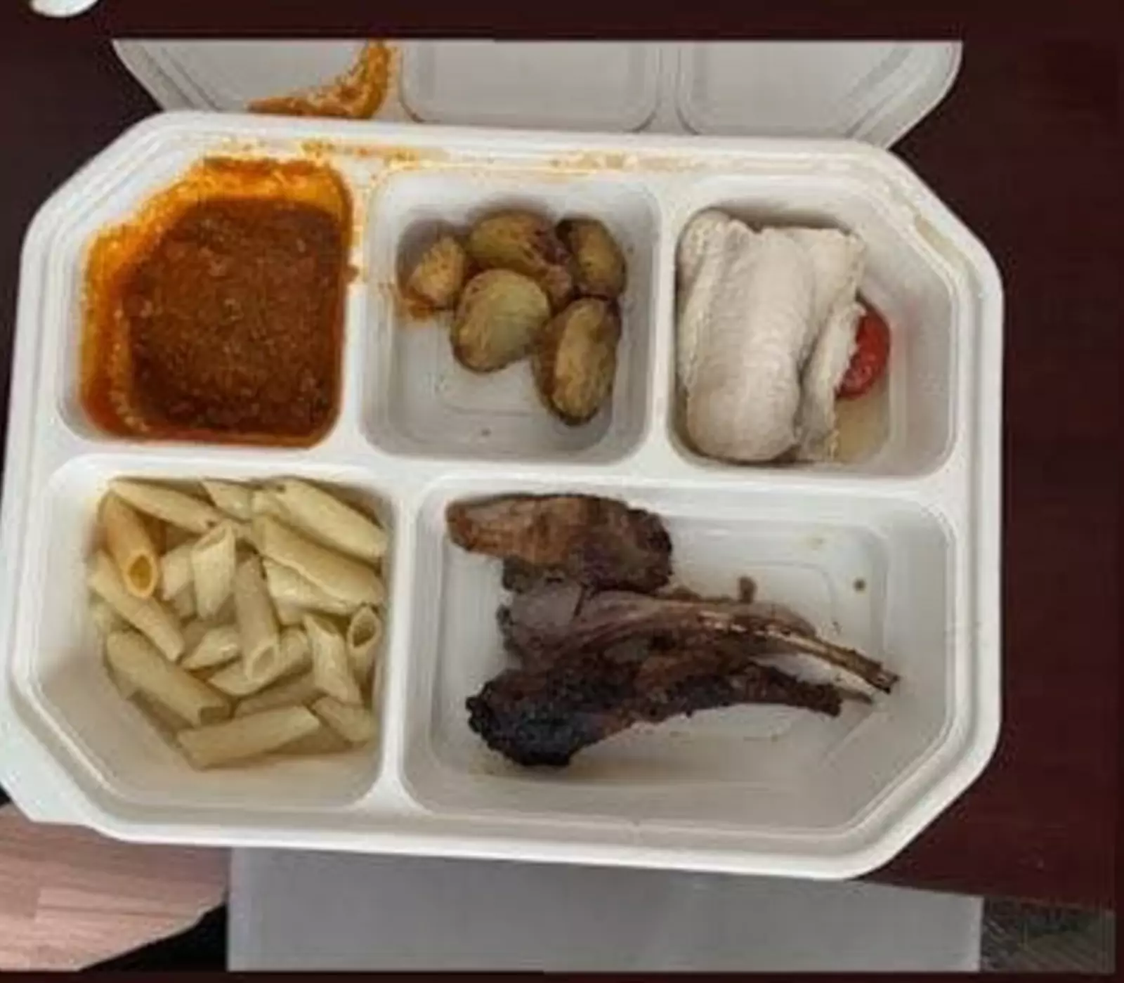 «Этим меня кормят на завтрак, обед и ужин уже 5 дней. Я очень сильно похудела, и у меня уже торчат кости… За день я съедаю три таких горсти макарон, потому что остальную еду есть невозможно. Но сегодня я съела весь жир, который дают вместо мяса, потому что очень голодна», — рассказала Васнецова.