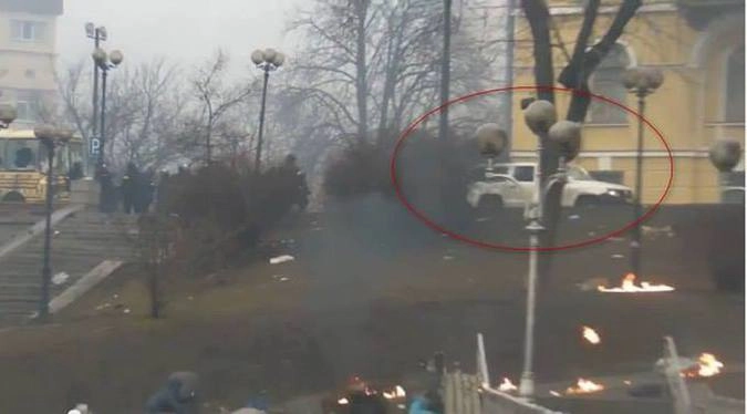 Блогер Tuco Ramirez заметил сходство автомобиля с Volkswagen, засветившимся в в «антитеррористической операции» в Киеве времен Майдана. Согласно новостному сюжету украинского телеканала «24» за 21 февраля 2014 года, номер принадлежит полковнику МВД Сергею Асавелюку, который участвовал. Асавелюк, садящийся в Amarok в правительственном квартале, появится в сюжете на 40-й секунде:
