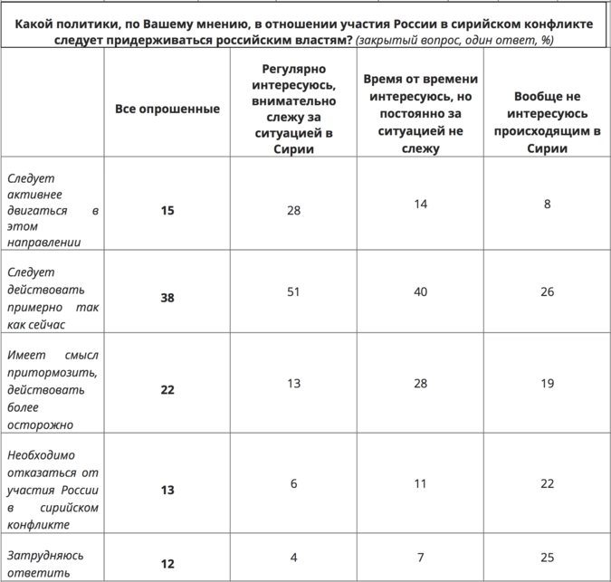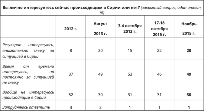 Интерес граждан РФ к событиям в Сирии не снижается на протяжении последних полутора месяцев. Около 69% россиян следят за ситуацией на Ближнем Востоке через средства массмедиа, из них 20% - регулярно и 49% - время от времени.