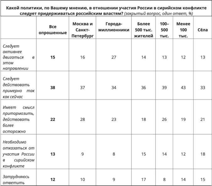 Порядка 53% россиян одобряют активное участие российских вооруженных сил в боях против «Исламского государства», 15% даже советуют действовать более напористо.