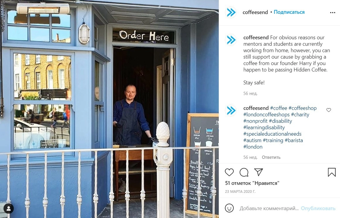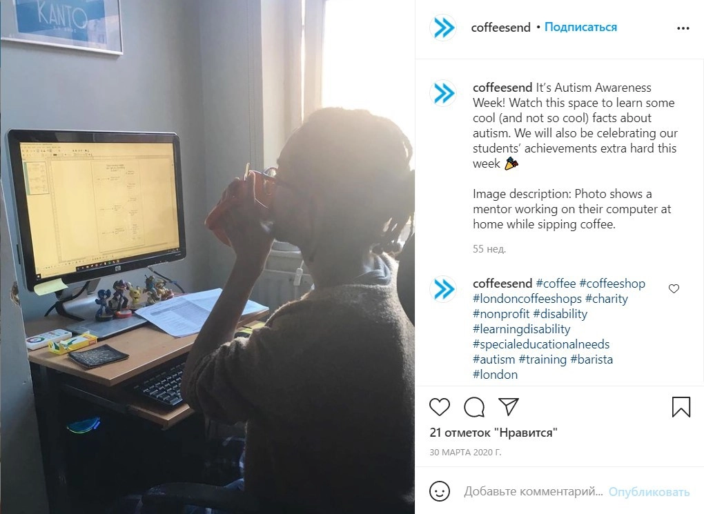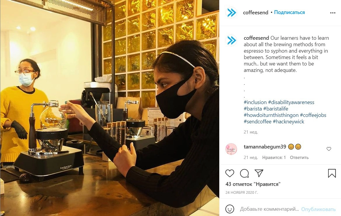 SEND Coffee работает с очень широким кругом лиц с ограниченными возможностями. Каждый, кто приходит к ним на обучение, может рассчитывать на успех в поисках работы. Они не отказывают никому. Во время ограничений из-за пандемии коронавируса обучение продолжалось дистанционно.