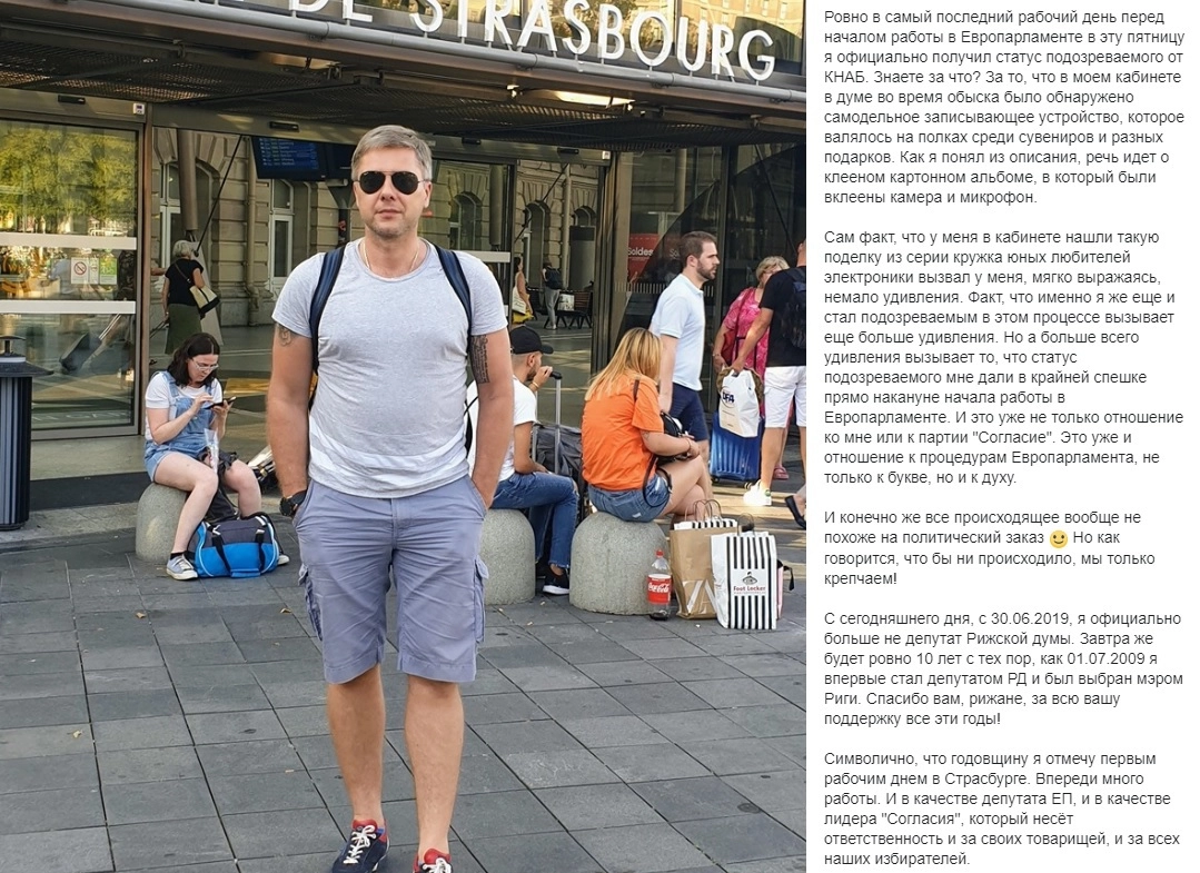 Автор публикации также написал, что с 30 июня официально не является депутатом Рижской думы.