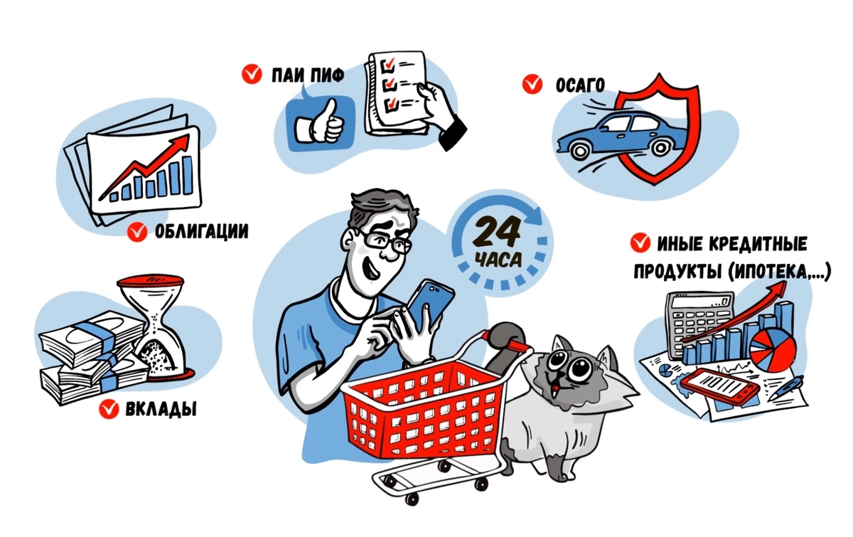 Запуск нового онлайн сервиса позволяет гражданам приобретать финансовые продукты от разных организаций на одной платформе в круглосуточном режиме в любой точке России. При этом количество участников в системе не ограничено. Теперь открывать вклады, подписывать договоры с банками, покупать страховку, акции и облигации, управлять финансами можно не выходя из дома. И все через единый личный кабинет.