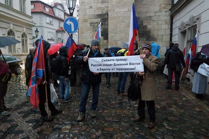 Пока добрая сотня активистов митинговала неподалеку от знаменитой Стены Леннона, высказывая свое недовольство тем, как в европейских СМИ освещается деятельность руководства РФ, в Праге также проходила конференция на тему «История против пропаганды», подготовленная «Радио Свобода». Основными докладчиками конференции станут директор русской службы «Радио Свобода» Ирина Лагунина, профессор Андрей Зубов и преподаватель кафедры международных отношений Metropolitní univerzitа Praha Михаил Романцов. Все эти деятели проводят жесткую антироссийскую риторику, считают участники акции. Например, профессор Зубов был уволен из МГИМО после опубликования в «Ведомостях» его статьи, критикующей действия России в Крыму. Митинг против распространения антироссийской пропаганды состоялся в противовес данной конференции.