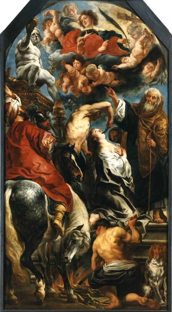 Житие как обычно: отказалась отречься от христианства, за что ее пытали. Среди многочисленных пыток была одна нетипичная, которая особенно приглянулась художникам -- ей вырывали зубы.