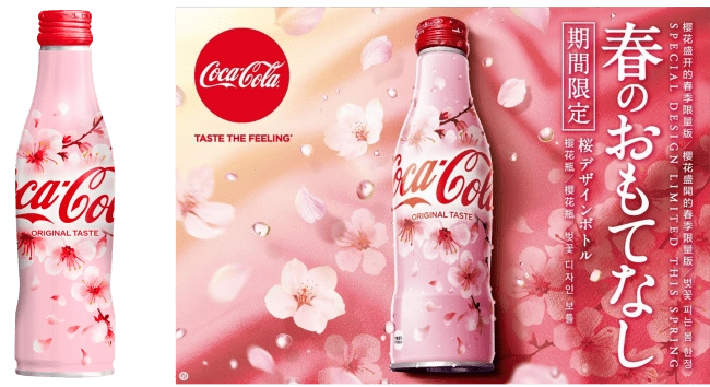 Coca-Cola Japan также ежегодно выпускает ограниченные дизайнерские бутылки. Стеклянная бутылка на 250 мл имеет особый дизайн с цветами сакуры.