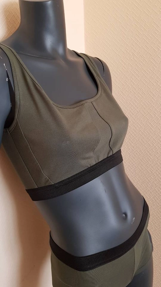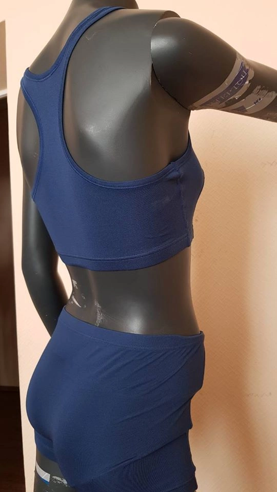 Пока элегантные модели представлены в четырех цветах: песочном, сером, синем и коричневом. Бюстгальтер выглядит как короткий топ, трусики — как мини-шортики.