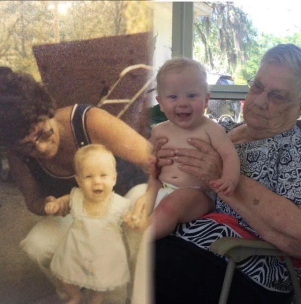«Слева я с бабушкой, а справа мой сын с ней же»