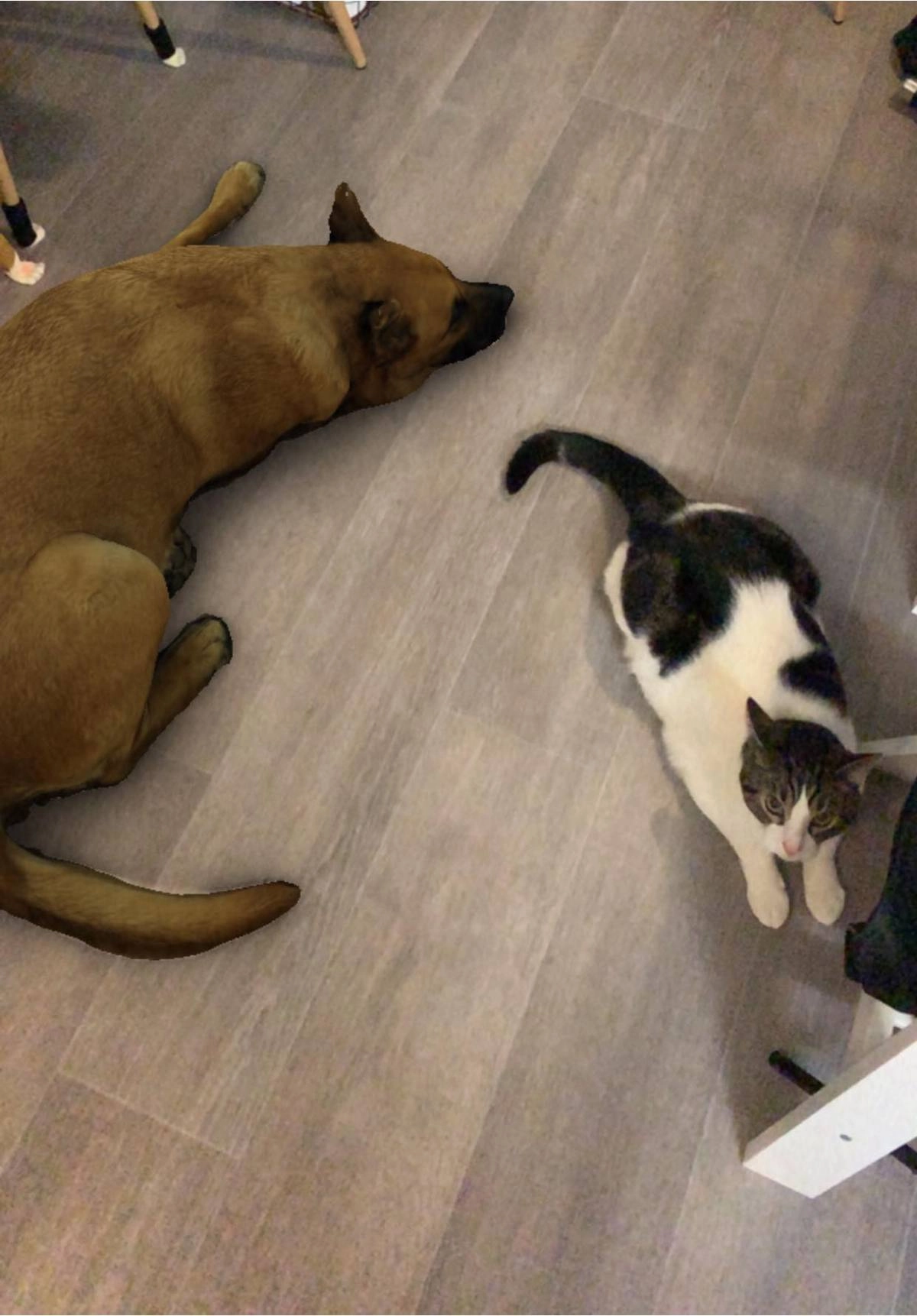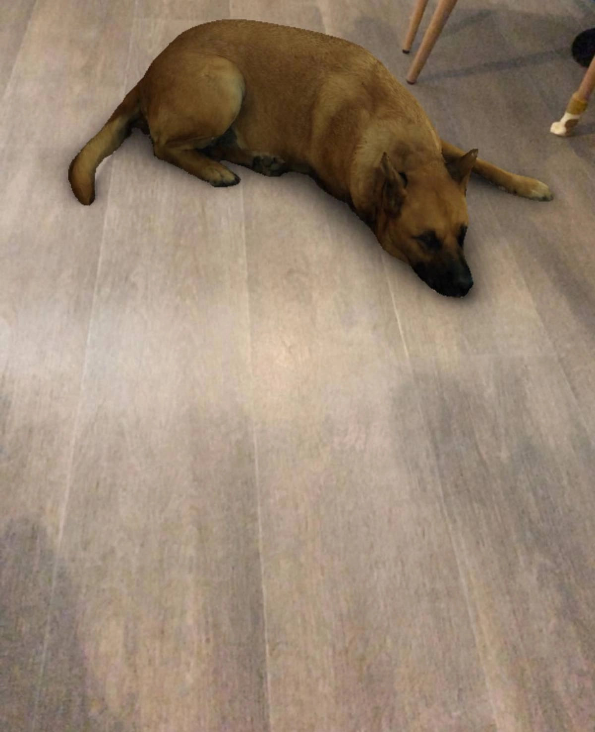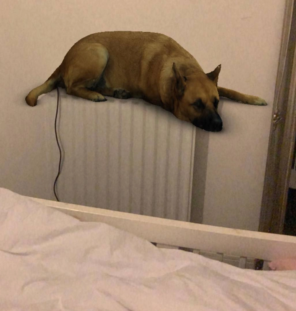 Девушка из Англии по имени Таллия Джей решила разыграть свою маму с помощью маски, которая создает фейкового пёсиля, и если его правильно расположить в пространстве, то на готовой фотографии будет казаться, будто он настоящий.
