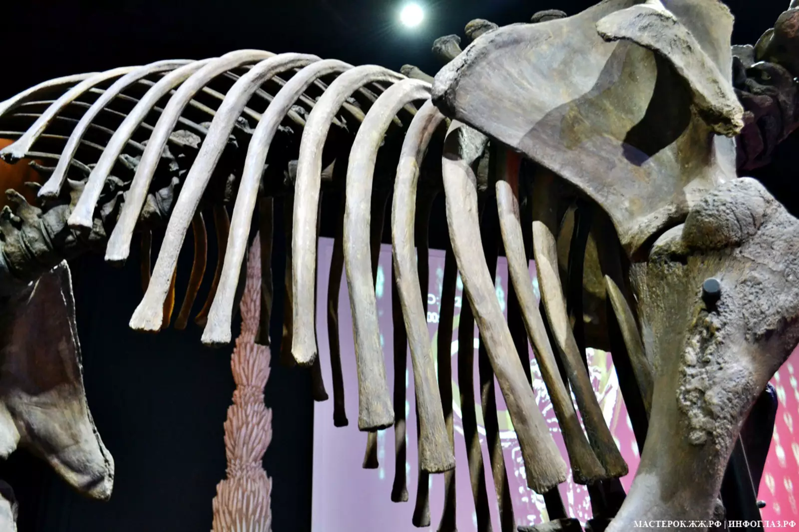А вот мамонт полностью настоящий, за исключением нескольких мелких косточек.