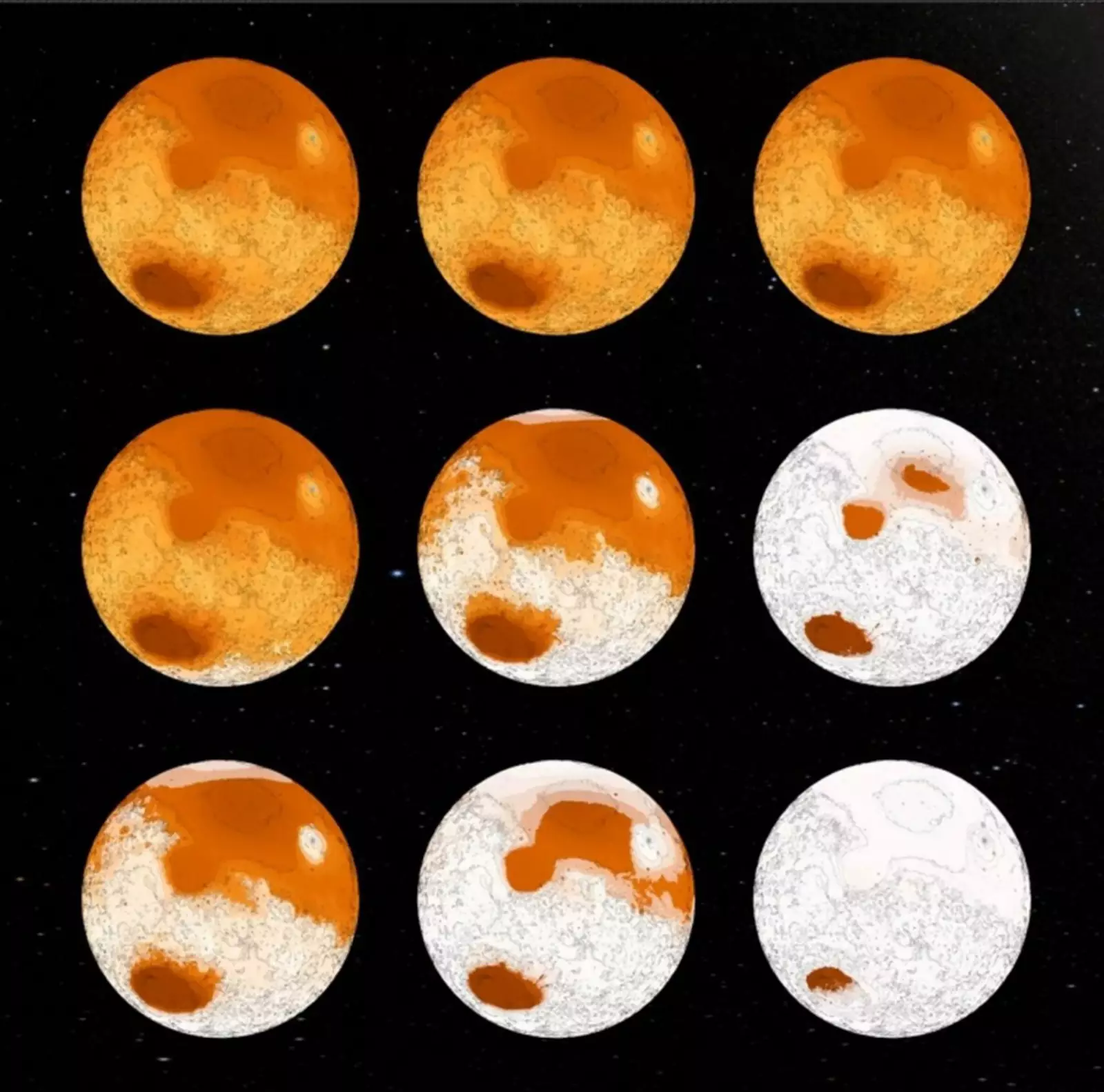 Модель, показывающая постепенное обледенение Марса в результате воздействия микробов на атмосферу.