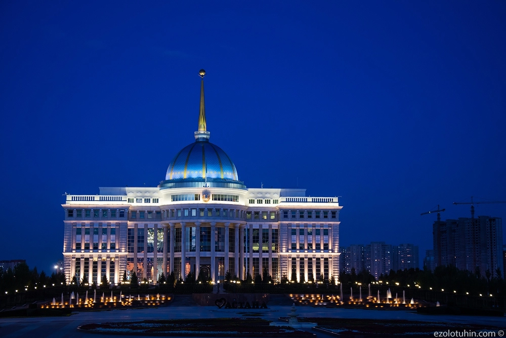 Новая, построенная в 2004 году резиденция президента Казахстана сразу же попала в список самых красивых президентских дворцов мира. Дворец построен напротив монумента «Байтерек» на левом берегу реки Ишим.