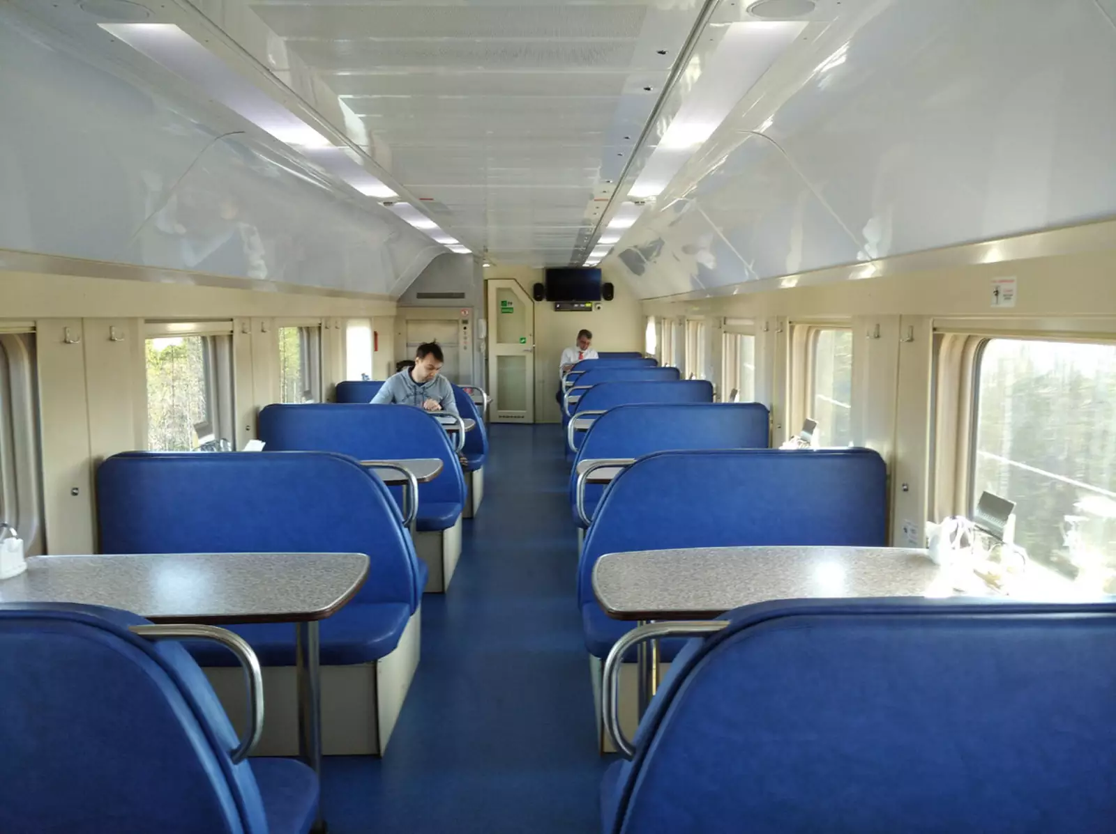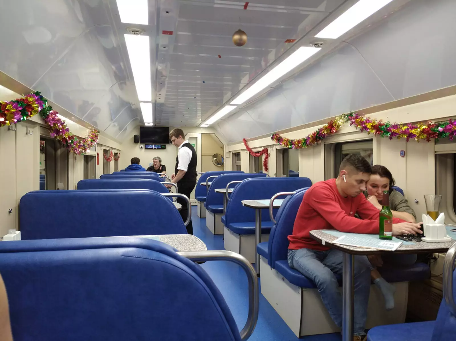 Кстати, о вагоне-ресторане. Он тоже устроен интересным образом. Внизу обычно бар и кухня.