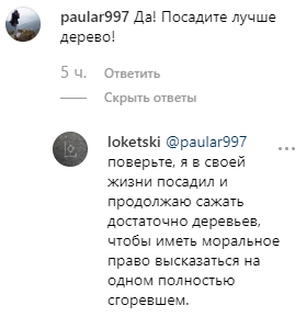 Подписчики поддержали художника. Но были и те, кто счел его работу пиаром на модной теме, предложив лучше самому посадить дерево.