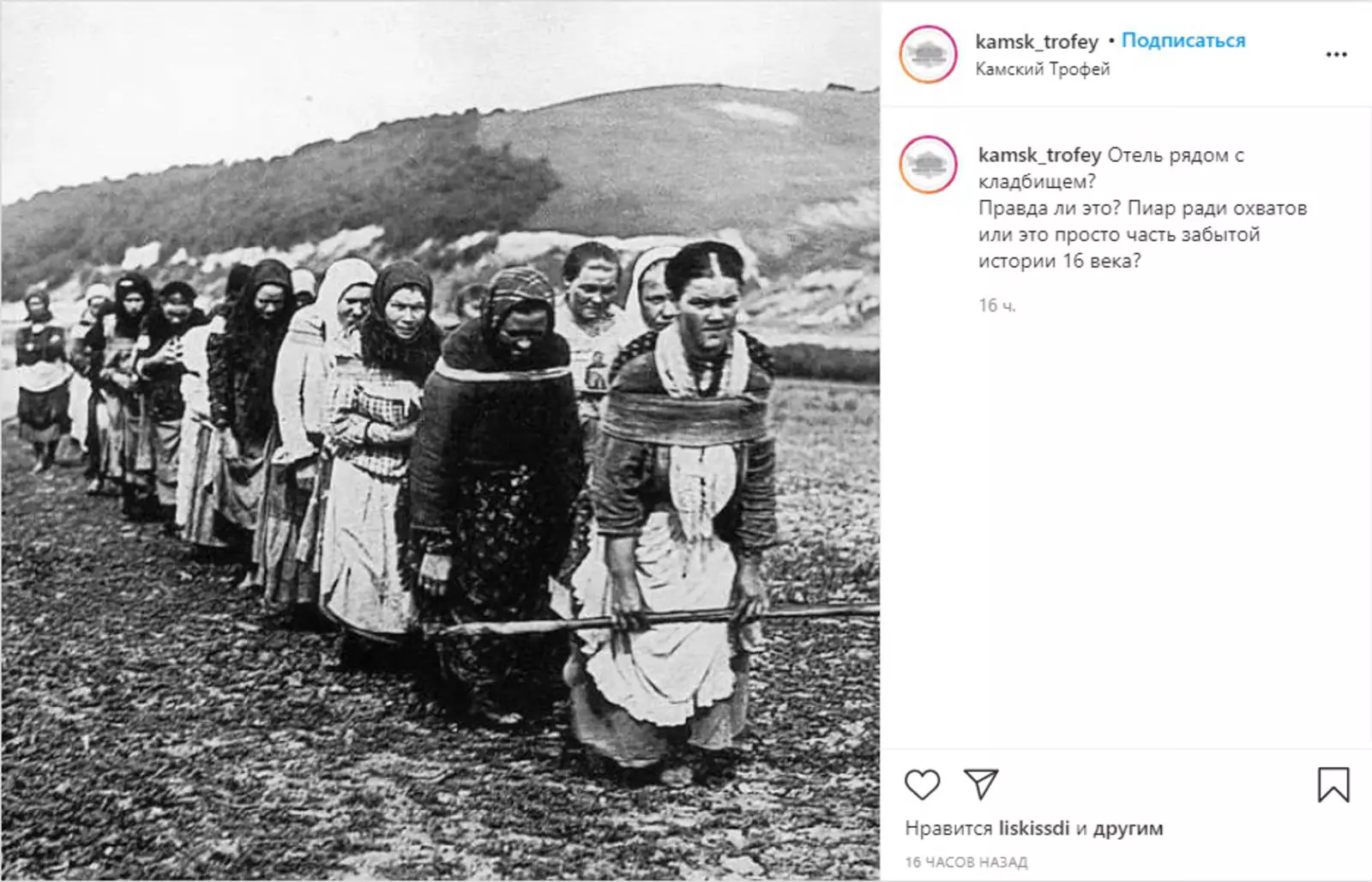 По рассказам местных жителей, на этом месте находится старое кладбище, на котором похоронены их прабабушки и прадедушки. Надгробий и крестов не осталось, но в 60-е годы еще можно было разглядеть очертания могильных холмиков. Местный священник утверждает, что хоронить здесь начали давно — первую деревянную церковь в Богородском (это старое название Камского Устья) возвели еще в 1630-е годы, — говорится в сообщении.