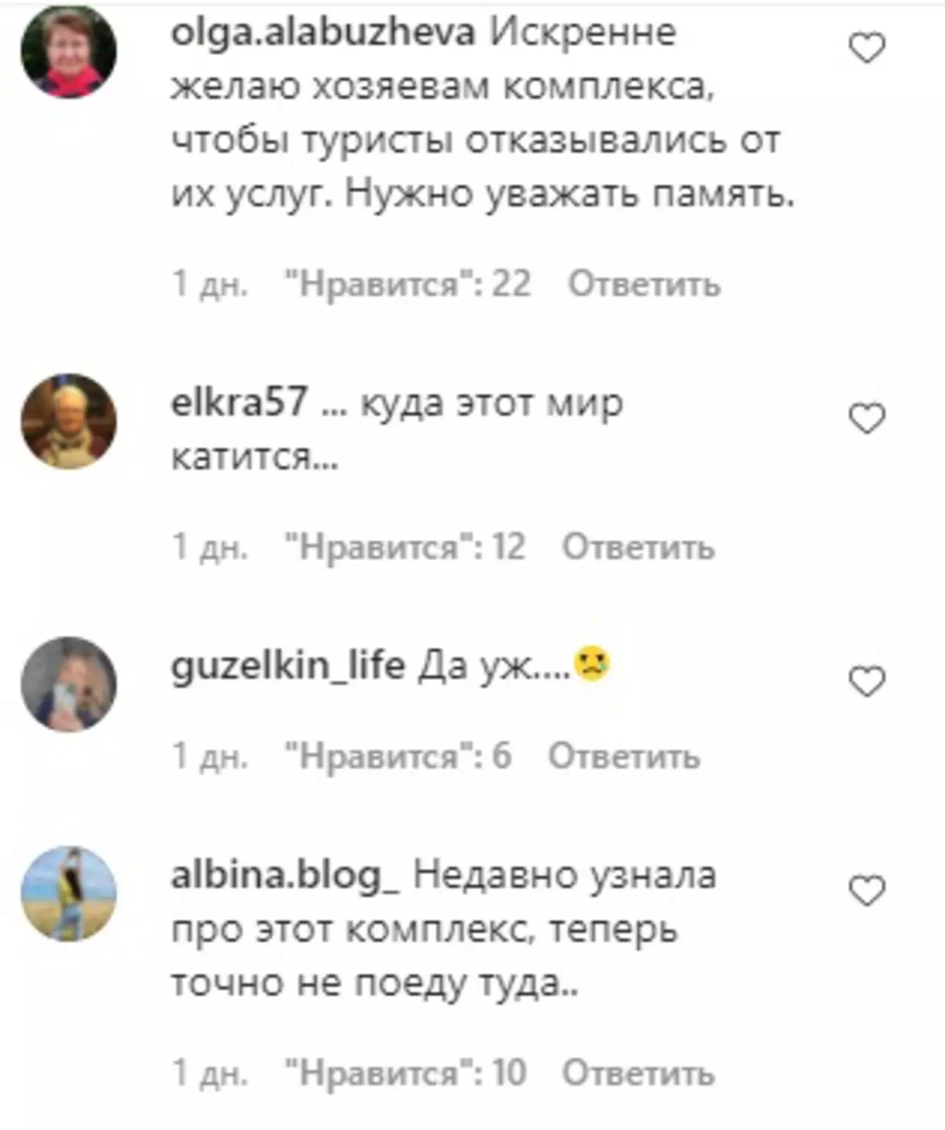 Несколько лет назад зону кладбища вдруг обнесли забором, предполагающим, что это место тоже теперь принадлежит гостиничному комплексу. Местный общественник дядя Юра добился сноса трехметрового забора и присвоения территории статуса парковой зоны-мемориала в честь погибших во времена Великой Отечественной войны. Однако после смерти дяди Юры неравнодушные местные активисты не смогли препятствовать притязаниям гостиничного комплекса на склон, — сообщают «Другие места».