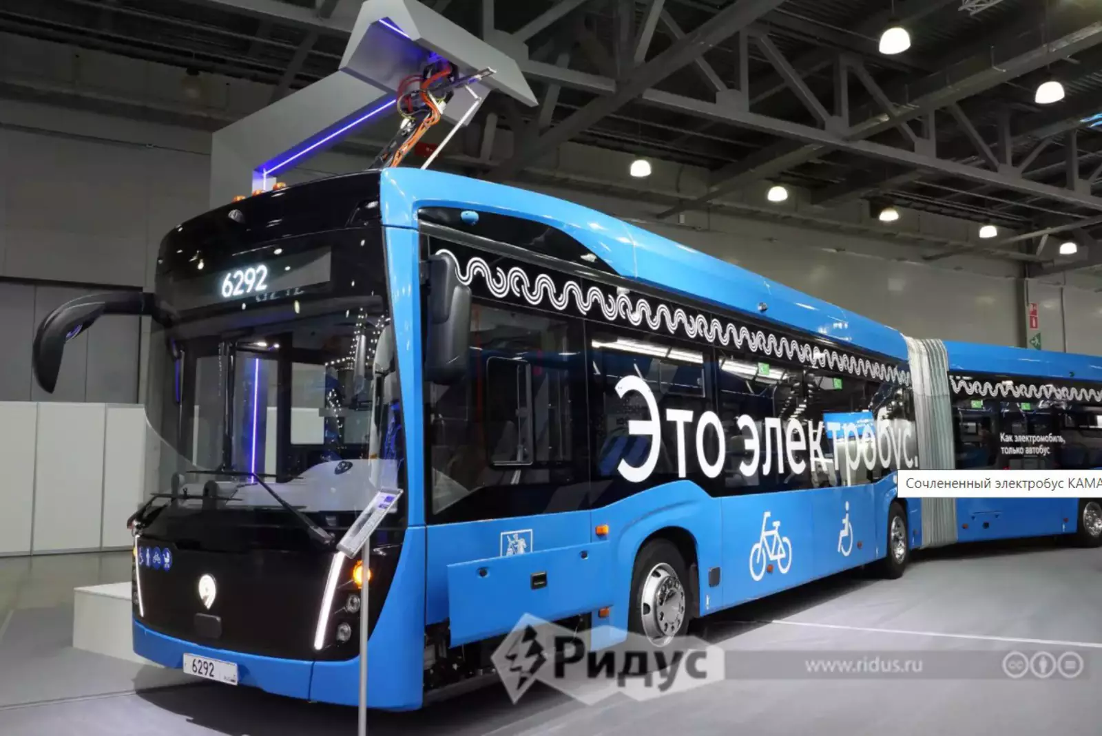 «В этом году мы изготовим 350 электробусов и 1700 автобусов большой вместимости. Около 70% автобусов будут работать на компримированном сжиженном газе. Тоже очень понятный крен, раньше мы уговаривали, теперь мы видим, что даже заказы приходят уже строго сориентированные на газомоторное топливо, потому что экономика и экология свое отрабатывают, — заявил генеральный директор КАМАЗа. — Важно, что мы в этом году сделали и вывели на испытания как 18-метровый автобус особо большой вместимости (т.н. гармошка), так и электробус. Конечно, Москва ждет именно электробус, мы надеемся, что в феврале мы уже представим именно электробус особо большой вместимости на тестовую эксплуатацию, чтобы они могли его покатать с тем, чтобы в следующих тендерах эта техника находила уже свое применение».Сочлененный электробус КАМАЗ-6292.
