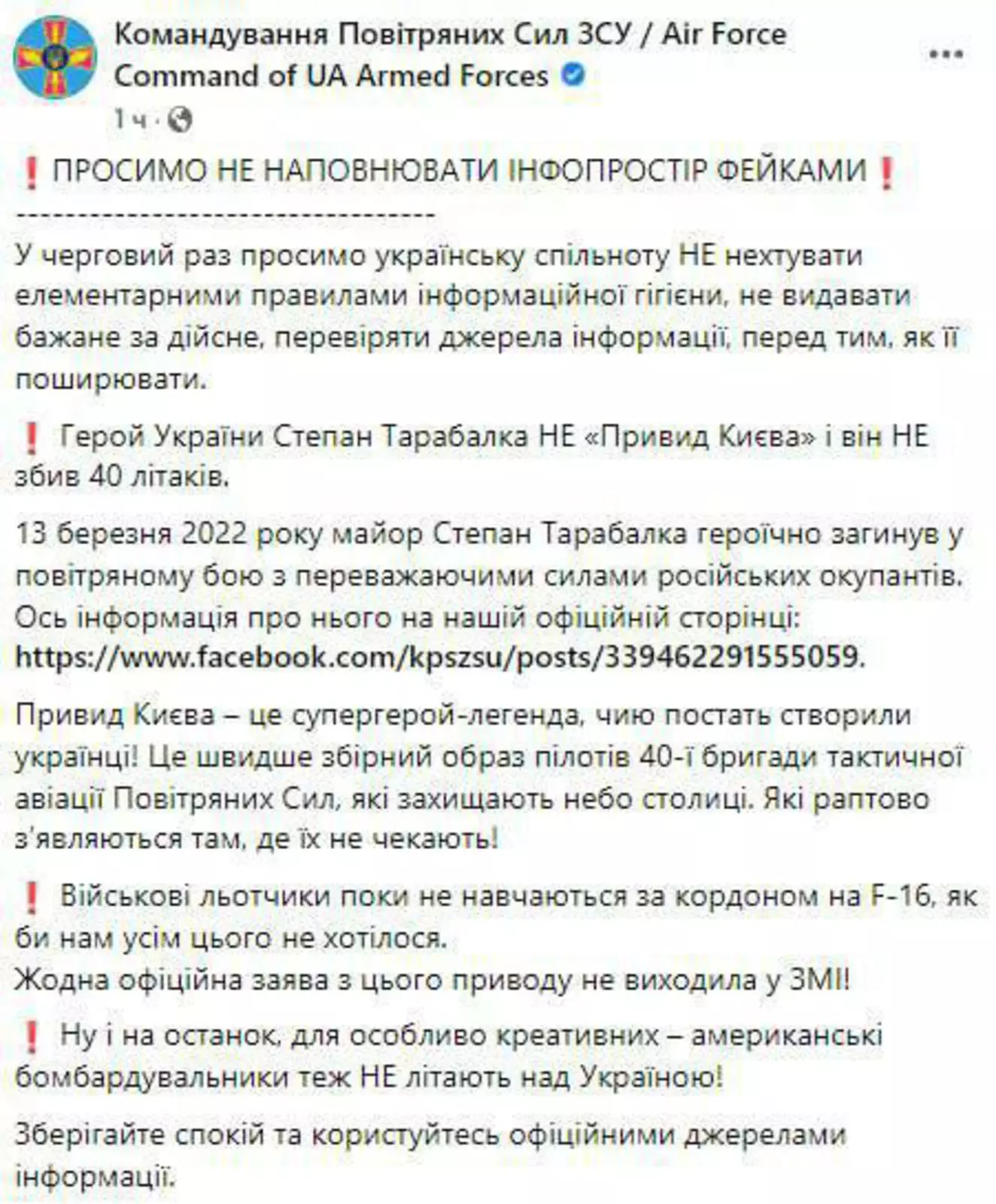 Легендарный ас «Призрак Киева», сбивший вообще все российские самолеты, будет вечно жить в сердцах украинских патриотов. Даже после того, как командование ВВС Украины признало, что никакого «Призрака Киева» не существует: персонаж выдуман от начала и до конца.