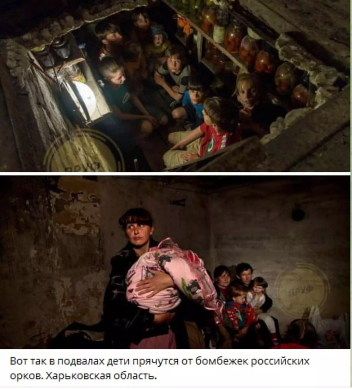 Украинские СМИ и соцсети распространяют жуткие фотографии детей Харьковской области, которые прячутся в подвалах от бомб российской армии.