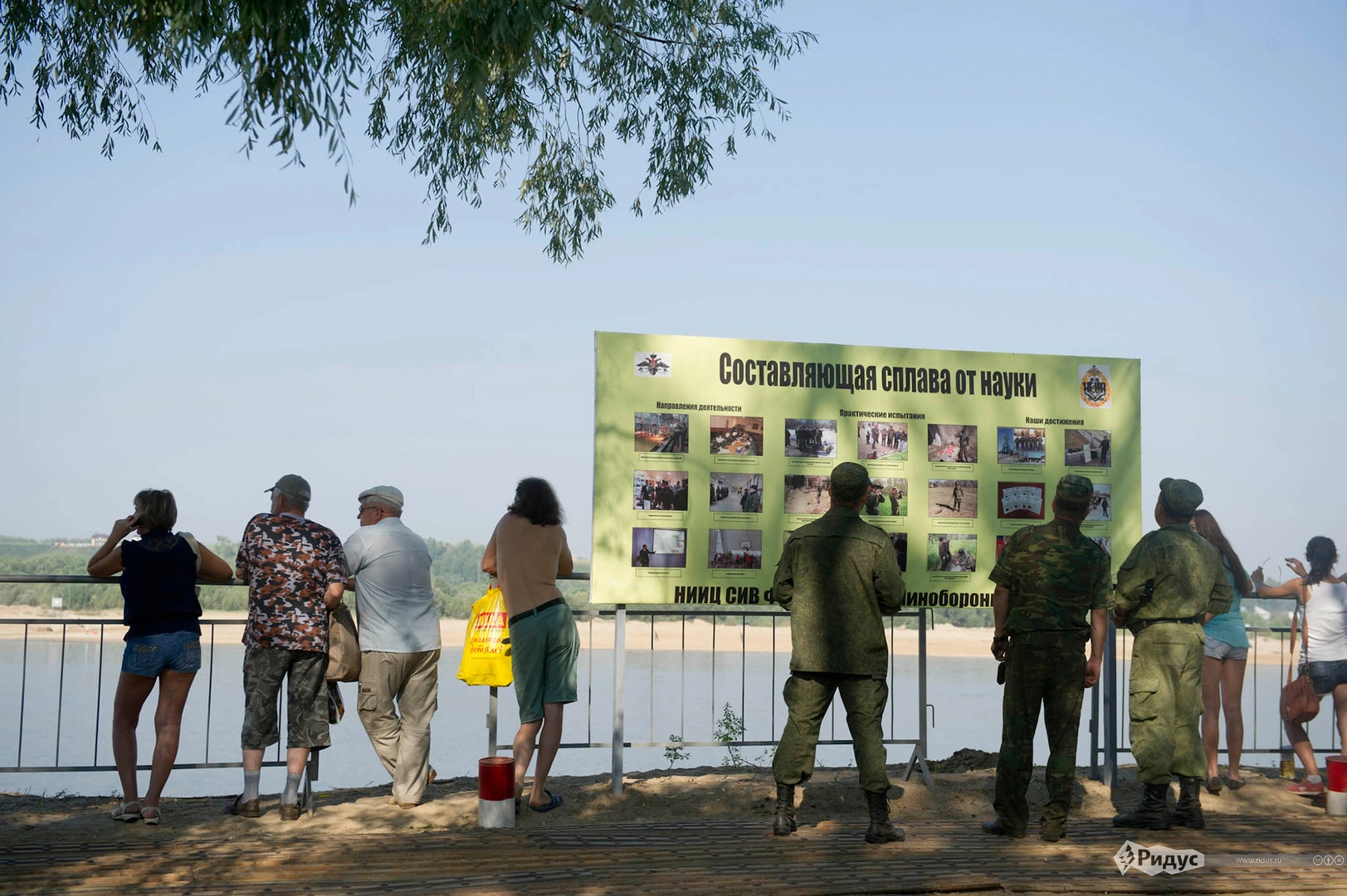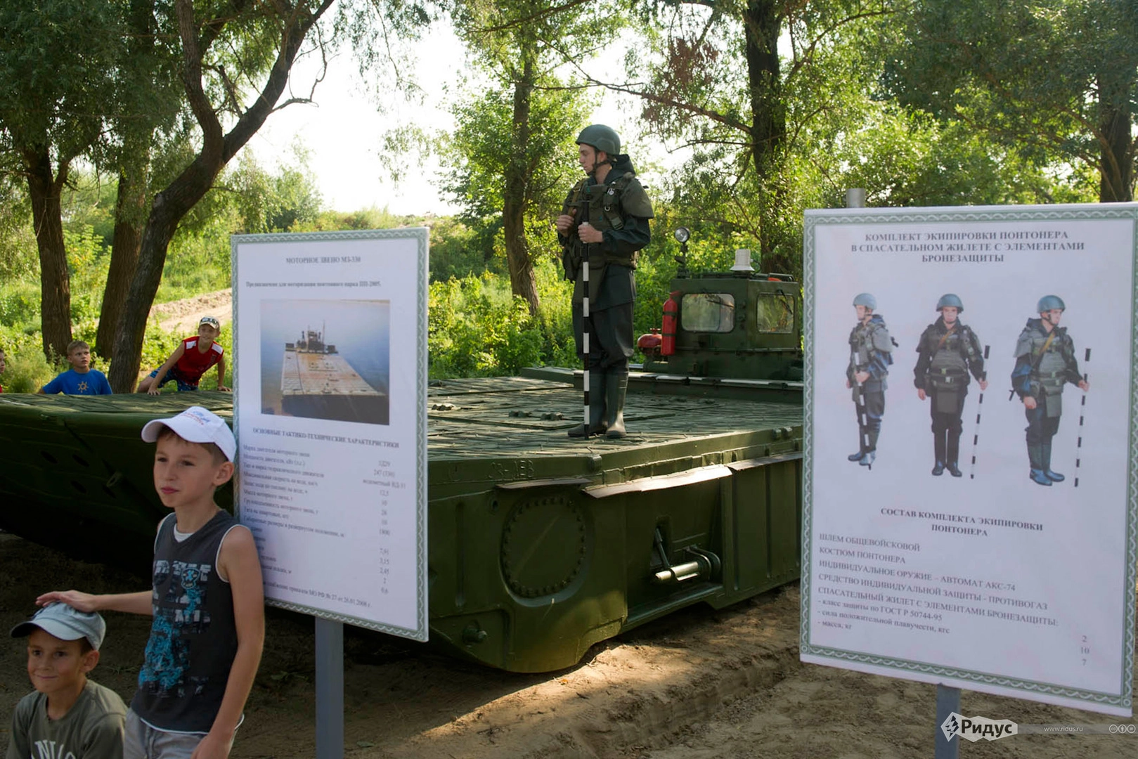 При жаре в 35 градусов и абсолютно чистом небе, военнослужащие в полной выкладке состязались в течение трех часов. Для зрителей в роще была организована выставка понтонно-переправочной техники. Очень уж жалели зрительницы военных, что стояли в бронежилетах возле своих машин. Однако жалеть надо было тех, кто сидел в буксировочных катерах, кто участвовал в соревнованиях, в шлемах и бронежилетах составлял понтонные переправы, таскал лодки, управлял спецтехникой. В то время, как зрители и журналисты, наблюдавшие за всем этим действием, изнывали от жары в своих легких одеждах.